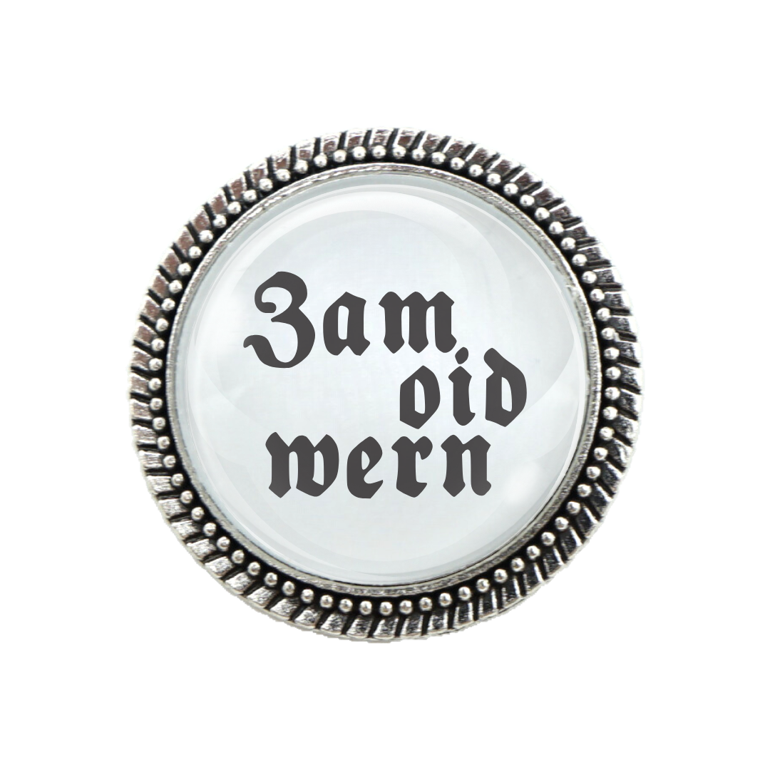 Gaudi-Brosche „Zam oid wern“ – Das perfekte Accessoire für Volksfest-Fans