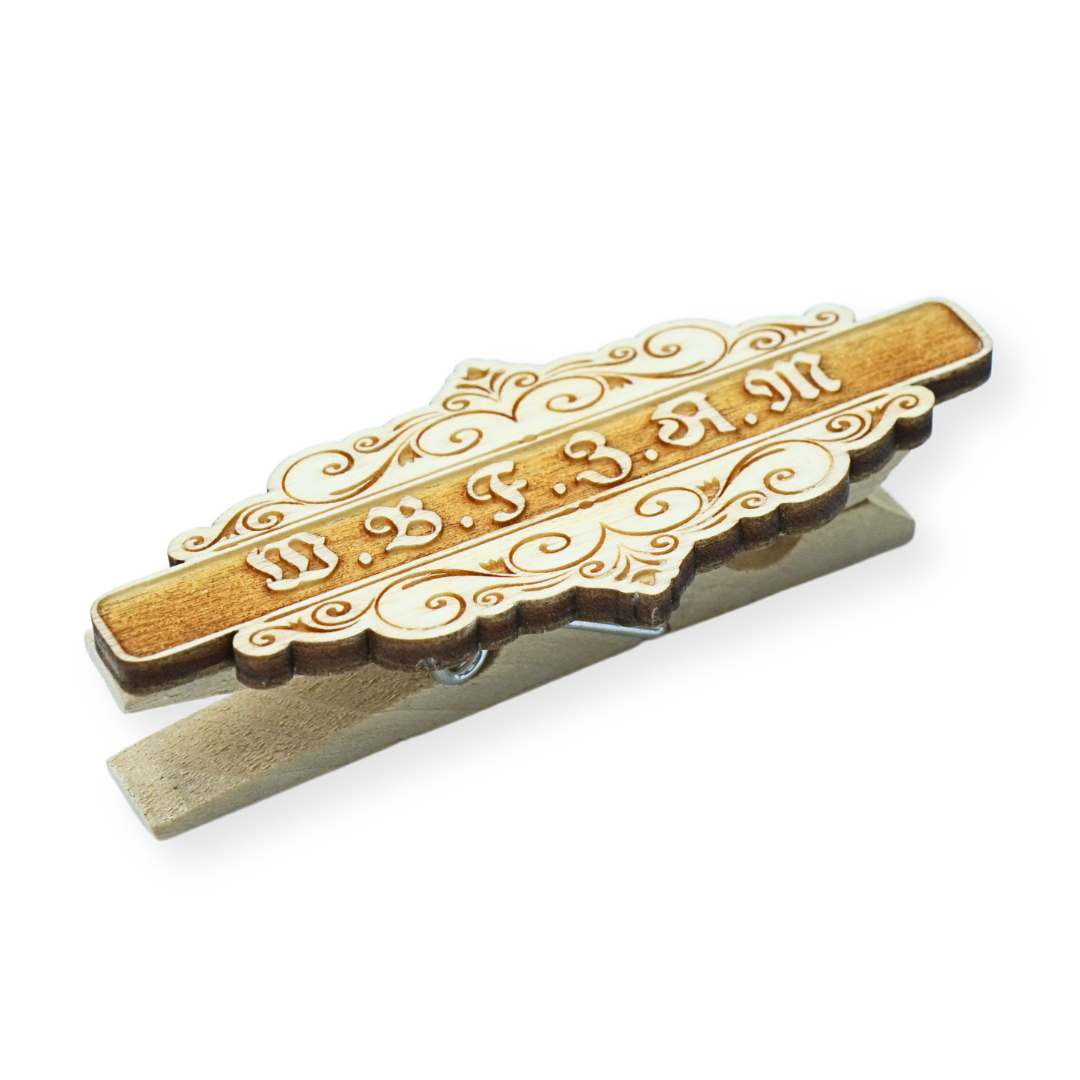 Entzückend bayerisch: Holzklammer "W.B.F.Z.A.M" für dein Trachtenoutfit!