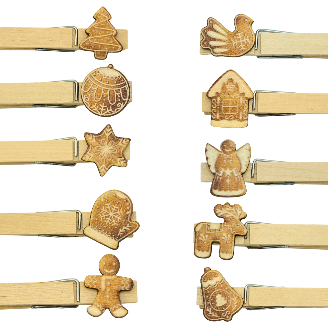 10er Set Namensklammern im Lebkuchen-Look – Die perfekte Weihnachtsdeko mit Handgravur!