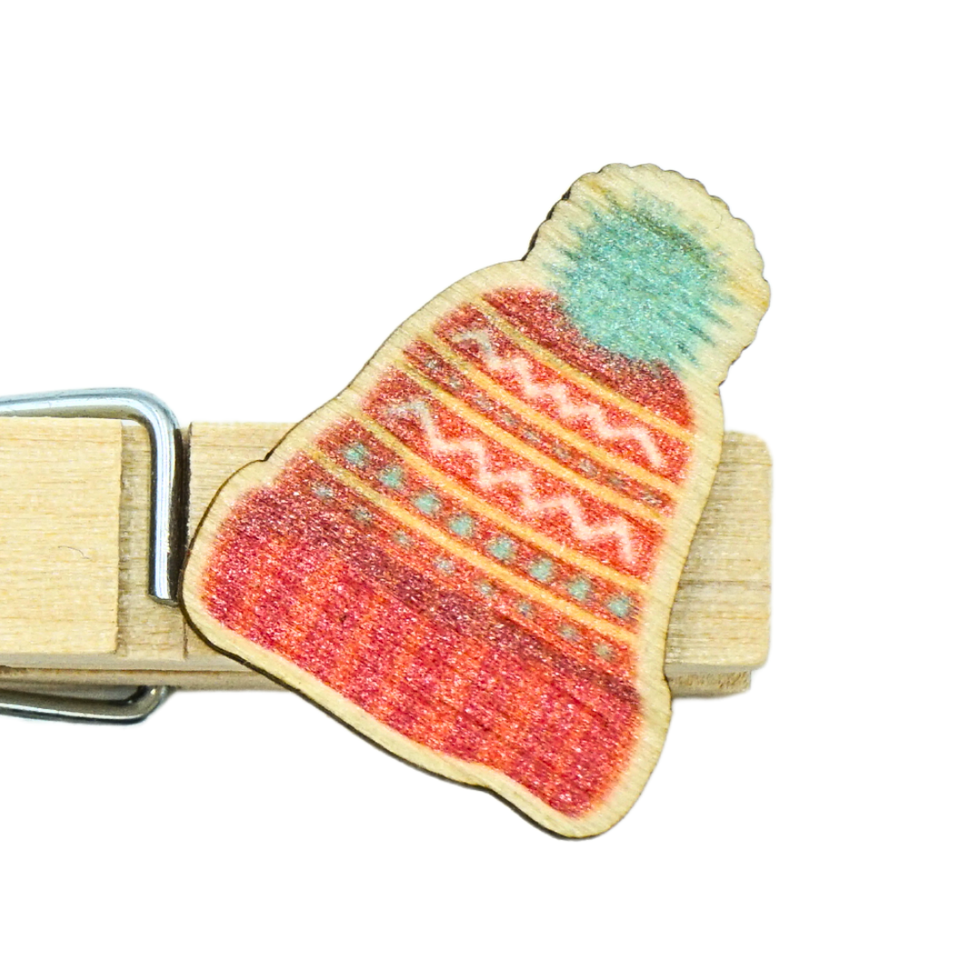 Holz Glubbal mit Weihnachtlicher Bommelmütze & Handgravur – Die perfekte Namensklammer für festliche Geschenke