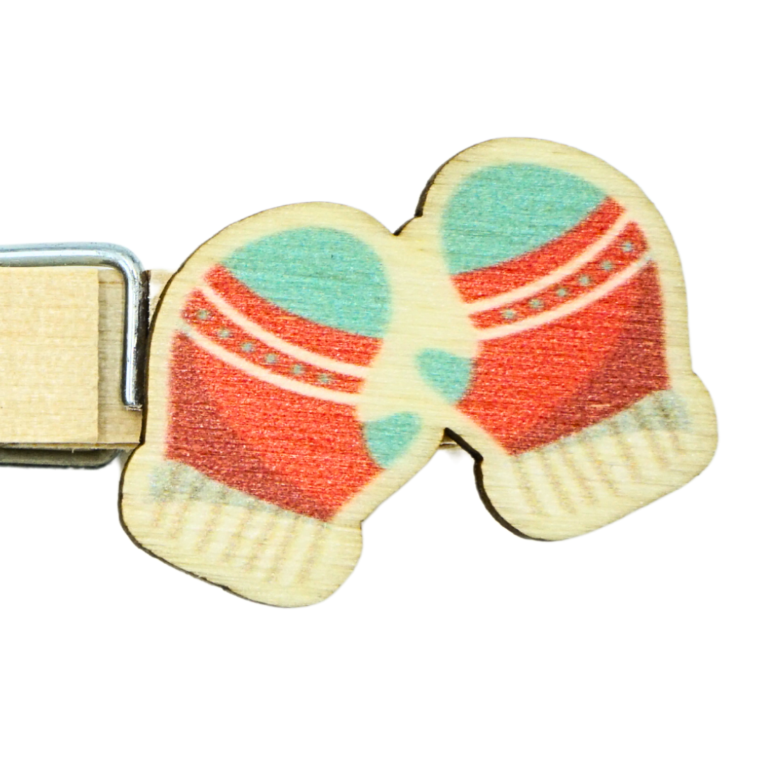 Holz Glubbal mit Weihnachtlichem Handschuh-Motiv – Namensklammer mit Handgravur – Perfekt zum Beschriften von Geschenken