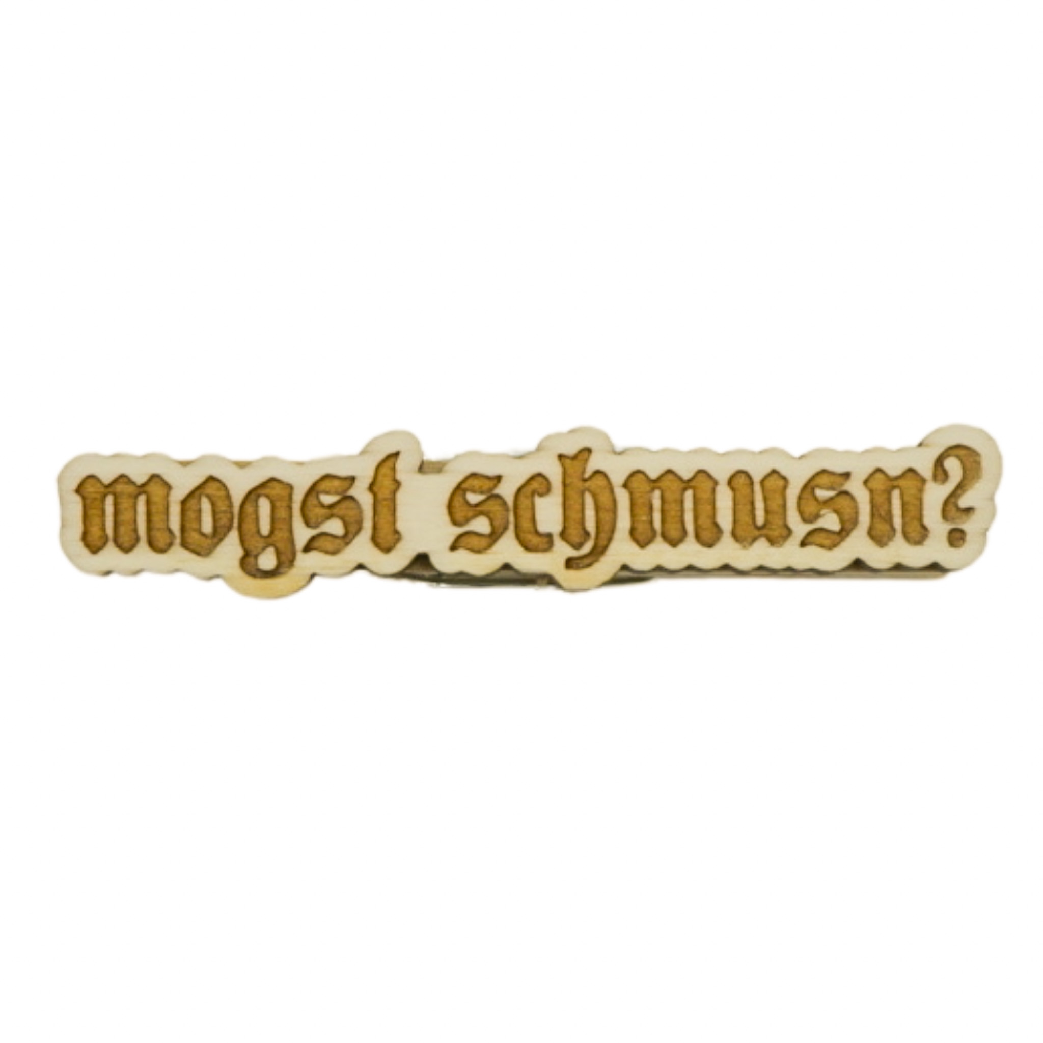 Glupperl aus Naturholz mit Gravur 'i mog di', passend für Volksfeste und Trachten, erhältlich bei Glubbal.shop
