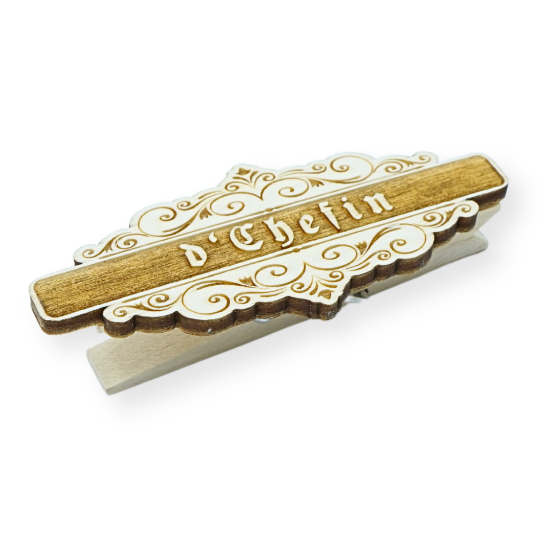 Entdecke den bayerischen Charme: D' Chefin - Die Holzklammer für dein Trachtenoutfit!