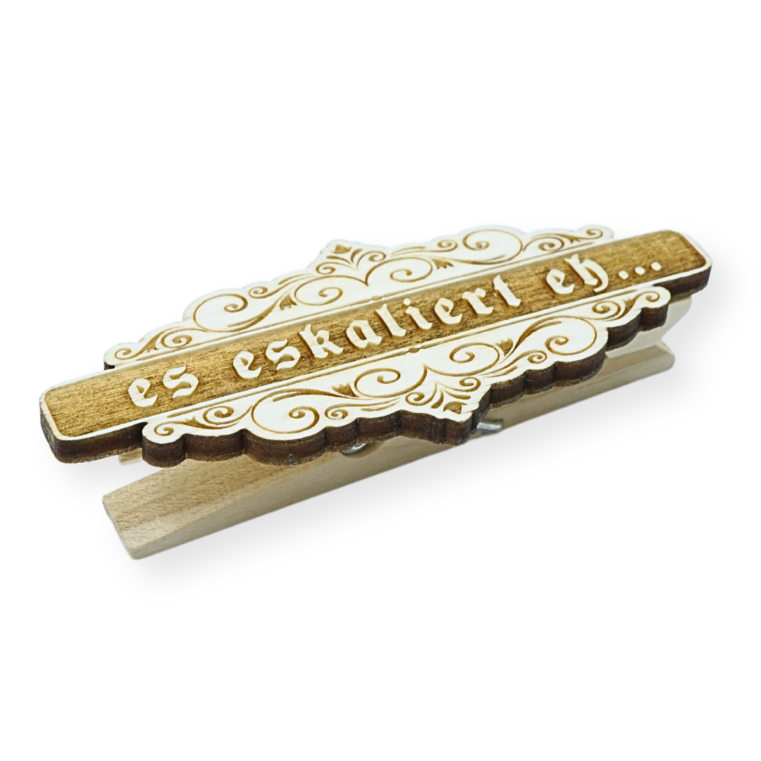 Es eskaliert eh: Holzklammer für Trachtenliebhaber – jetzt bei Glubbal.shop!