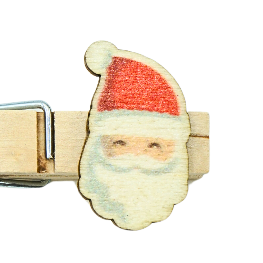Holz Glubbal mit weihnachtlichem Weihnachtsmann-Motiv – Personalisierte Namensklammer für festliche Geschenke