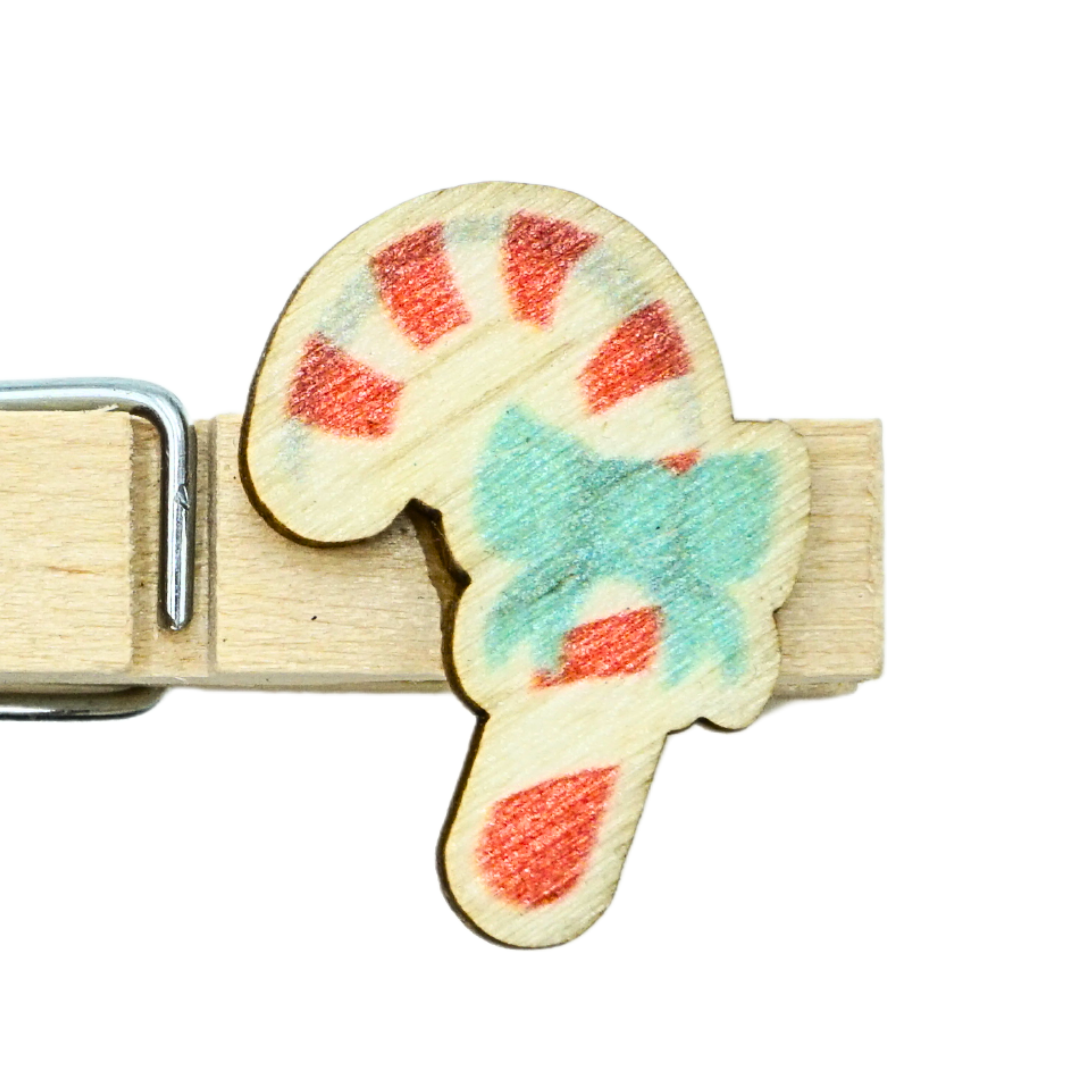 Holz Glubbal mit Zuckerstangen-Motiv – Die perfekte Namensklammer für Weihnachtsgeschenke!