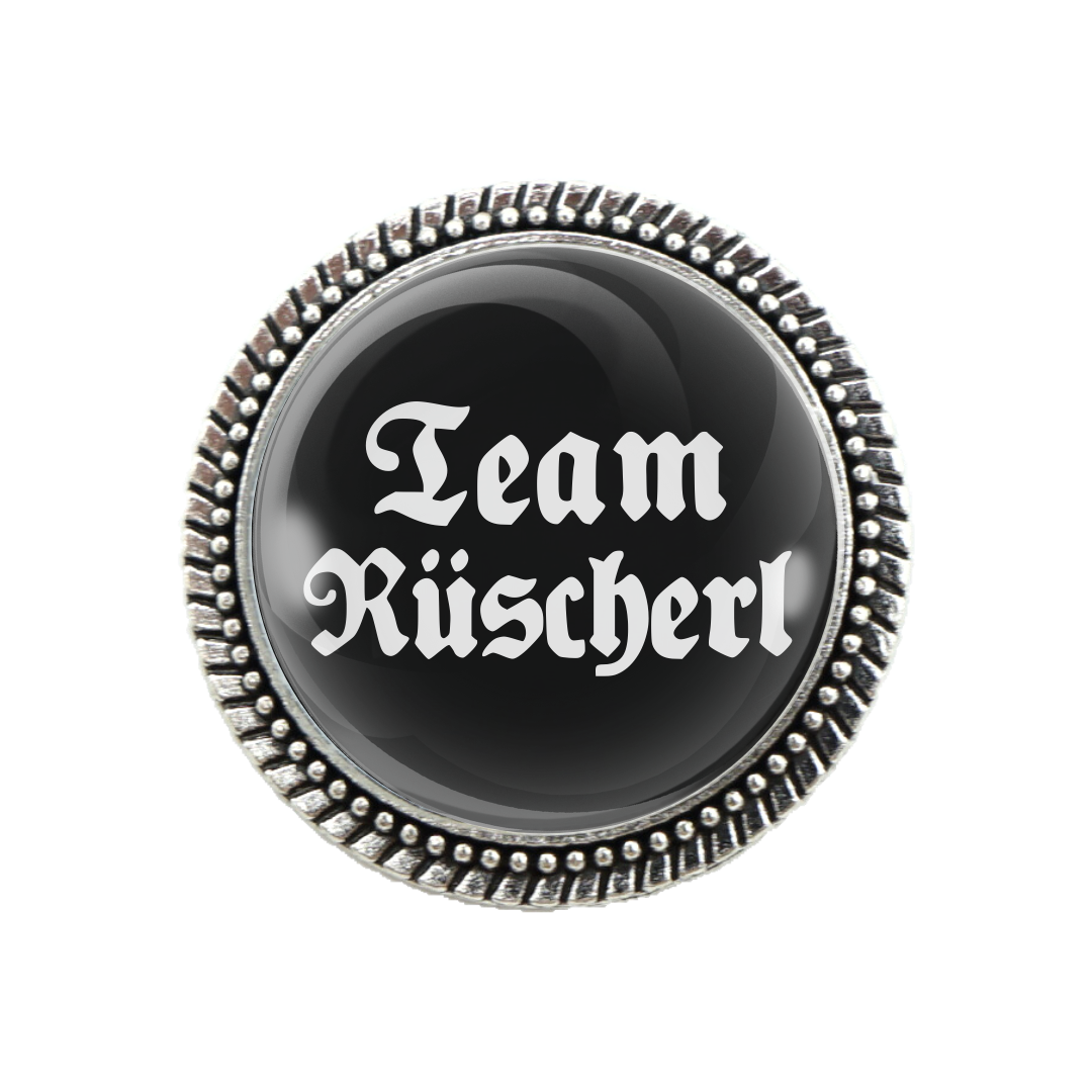 Gefertigt in hochwertiger silberfarbener Fassung, überzeugt die Gaudi-Brosche nicht nur durch ihre langlebige Verarbeitung, sondern auch durch ihr edles Design. Die schwarze Oberfläche bringt den weißen Schriftzug „Team Rüscherl“ perfekt zur Geltung und unterstreicht den humorvollen, aber stilvollen Charakter dieses Unikats. Mit einem Durchmesser von 3 cm und einem Gewicht von 15 g liegt sie spürbar wertig in der Hand – und bleibt auch am Trachtenjanker, Dirndl oder der Jeansjacke stets an Ort und Stelle.