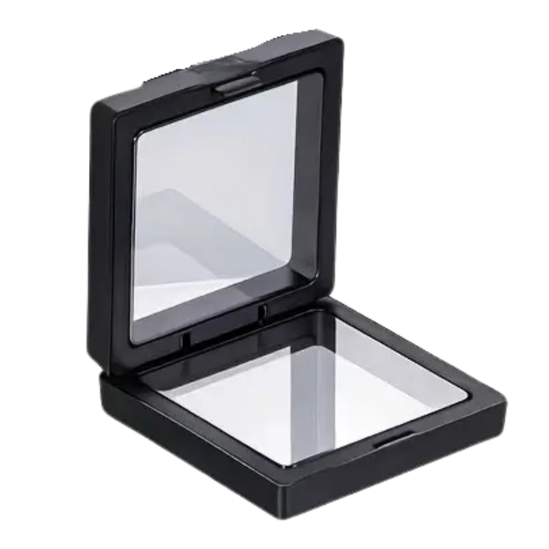 Edles Design: Schwarzer Hintergrund mit weißer, klar lesbarer Schrift – eingerahmt in einer eleganten silbernen Metallfassung.
