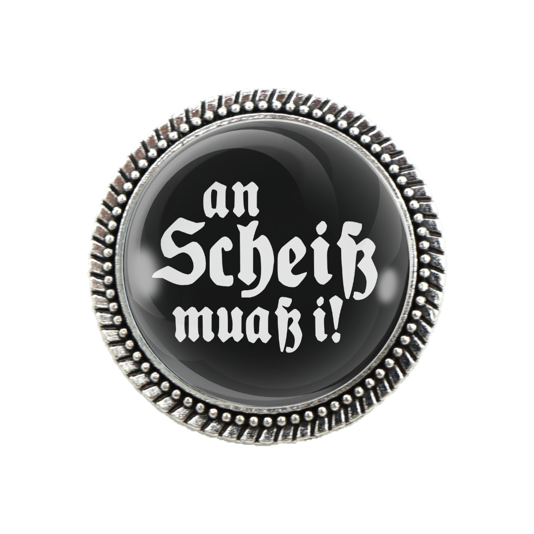 Manche Botschaften brauchen kein Mikrofon – sie brauchen Stil. Die Pracht-Gaudibroschn in edler schwarzer Ausführung mit silberner Fassung ist mehr als ein Accessoire: Sie ist ein Statement. Mit dem unverkennbaren bayerischen Spruch „An Scheiß muaß i“ zeigst du der Welt, dass du dich nicht verbiegen lässt – charmant, frech und voller Selbstbewusstsein.